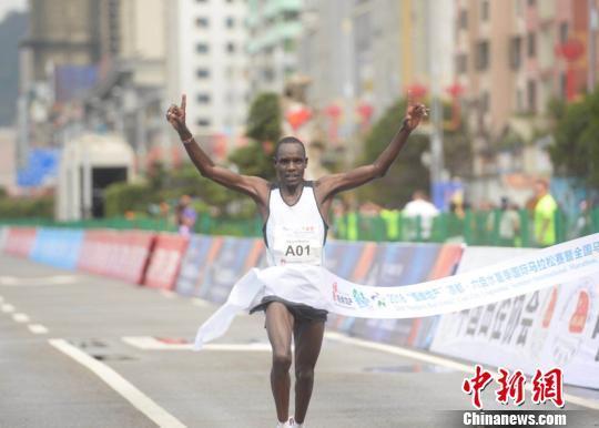 在男女組全程馬拉松比賽中,來(lái)自肯尼亞的選手在賽道上刮起了“黑色旋風(fēng)”。肯尼亞選手Kipsaat Mathew以2小時(shí)16分10秒的成績(jī)獲得男子全程馬拉松冠軍,僅36秒之差獲得亞軍的選手也來(lái)自肯尼亞。