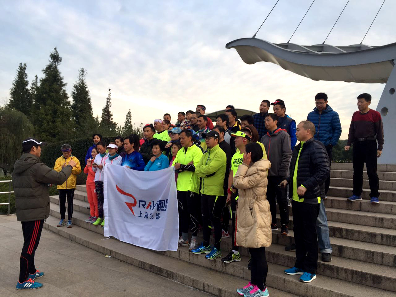 11月28日7點(diǎn), Ray跑團(tuán)上海分部成立儀式在上海市閔行體育公園舉行,近80名跑步愛(ài)好者參加本次活動(dòng)?;顒?dòng)中,上海分部團(tuán)長(zhǎng)陶云老師作開(kāi)團(tuán)致辭并解讀Ray跑團(tuán)的宗旨、未來(lái)規(guī)劃等。儀式結(jié)束后,團(tuán)員們?cè)诠珗@里進(jìn)行10公里的歡樂(lè)跑,賽程不記名次、不限時(shí)間,鼓勵(lì)參與人員跑完全程,感受跑步的魅力。